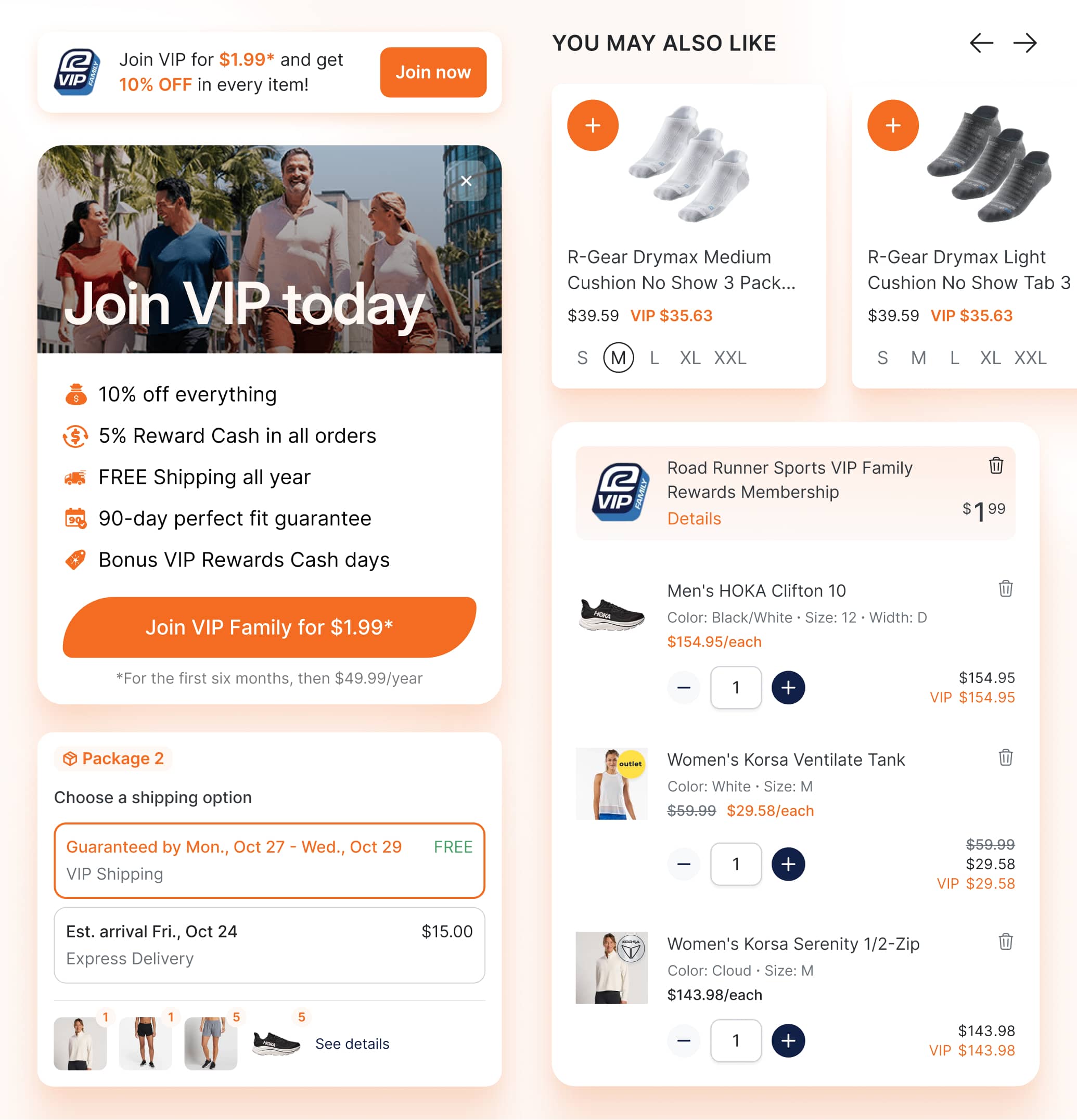 Road Runner Sports needed their checkout to do two jobs: convert non-members into VIP subscribers and make existing members feel the value of their status at every step. Their headless solution couldn't surface membership incentives contextually, display VIP pricing transparently, or handle complex business rules around rewards and exclusive benefits, limiting both acquisition and perceived value.